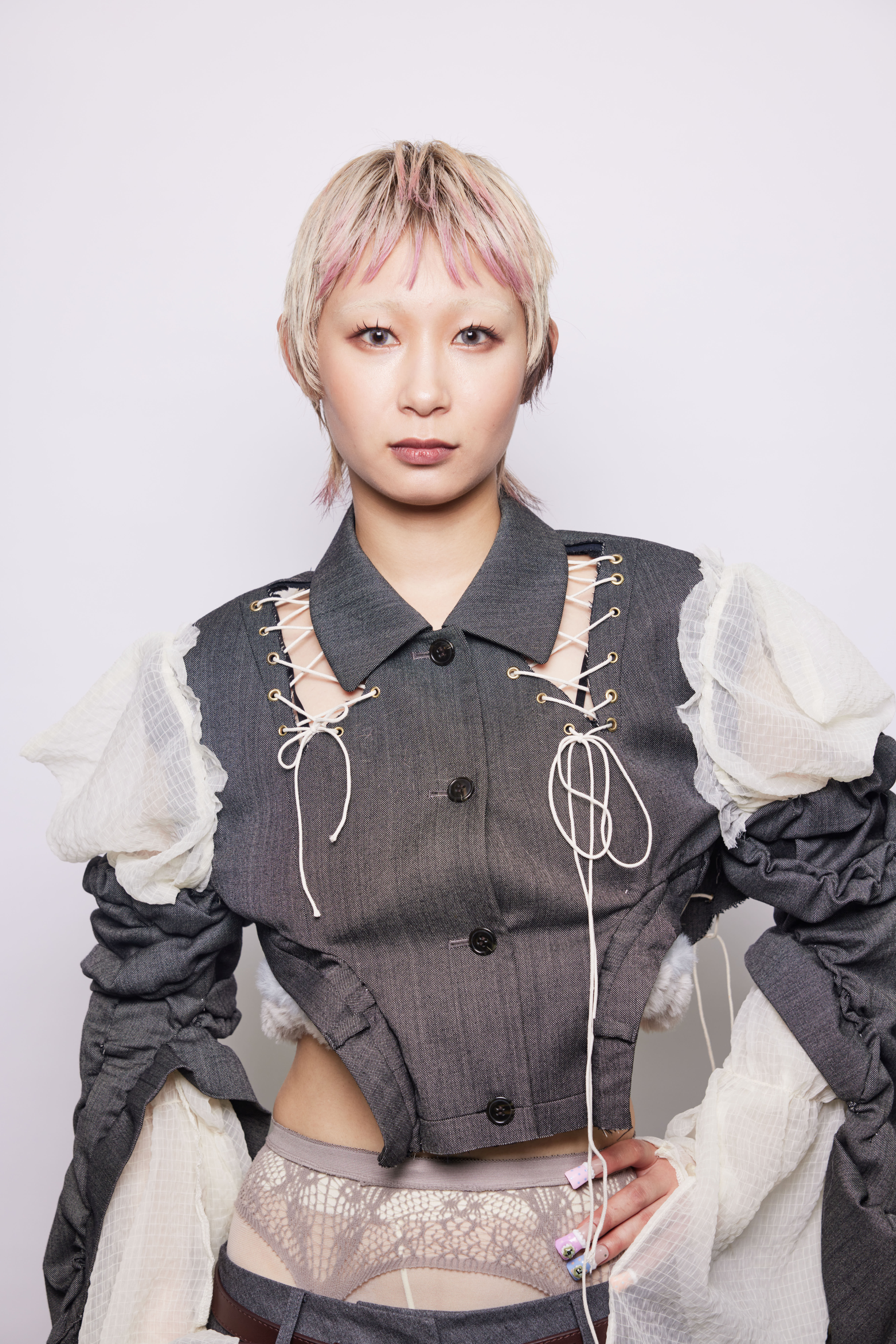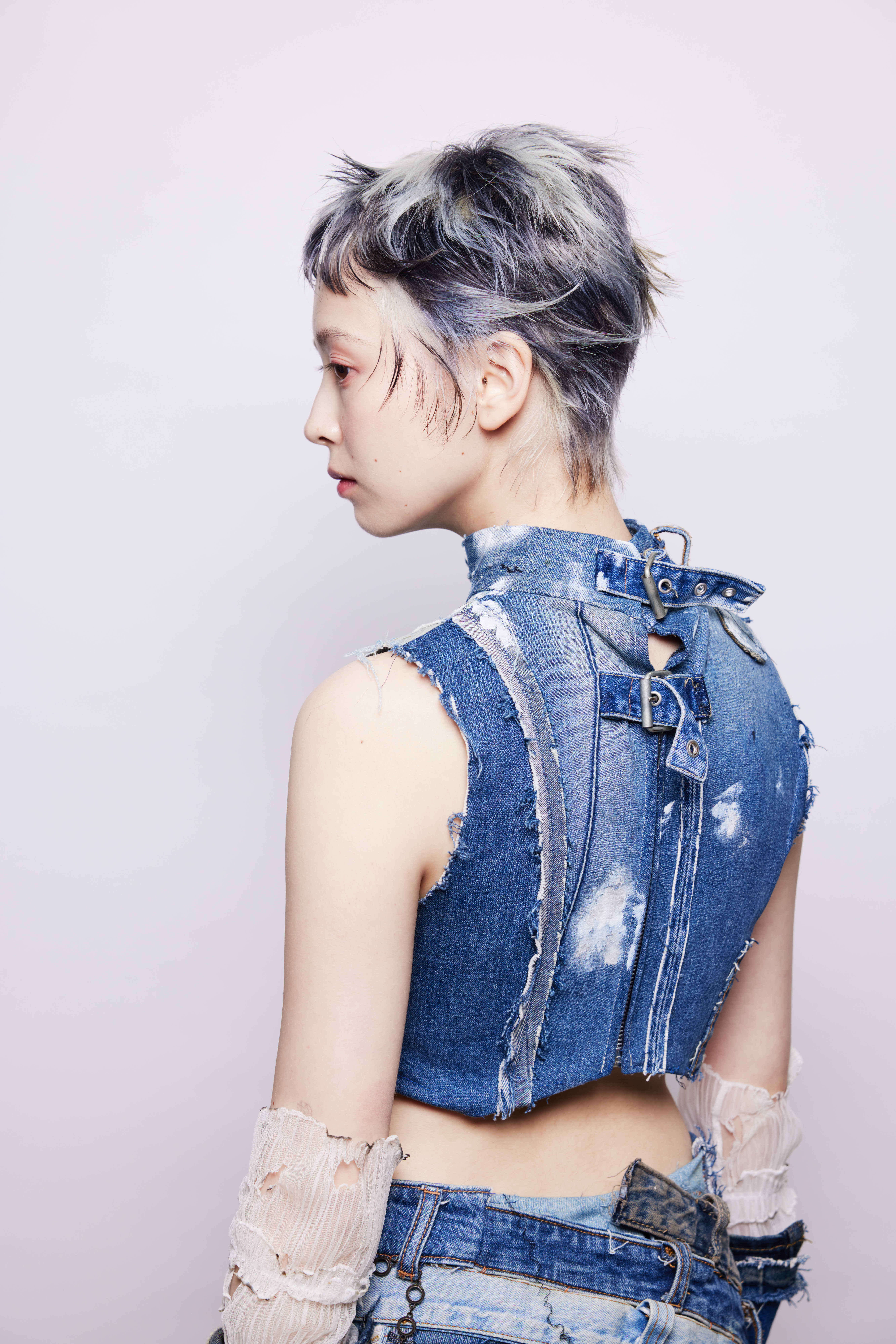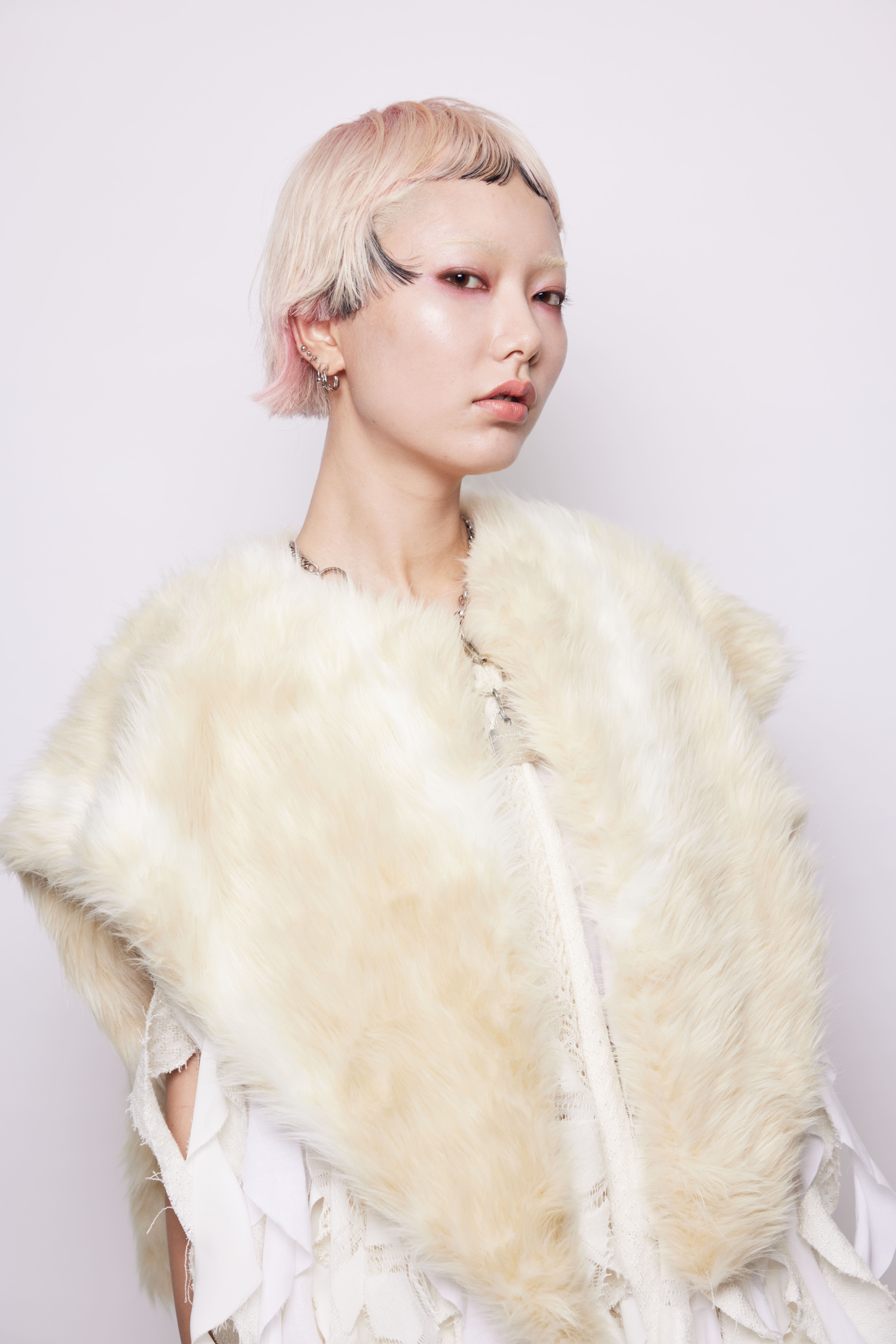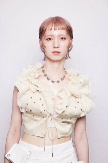 モデルの凛とした強さの中にある儚さを活かしたヘアメイク、衣装、カラーワーク、シルエットとどれも素晴らしかったです。ヘアのレングスとバランスもただ切り込むのでは無く、モデルに一番フィットする髪型を模索したのが伝わってくる素晴らしい作品でした。